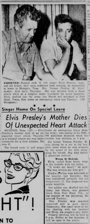 BIO Newspaper article of Elvis and Vernon right after Gladys died